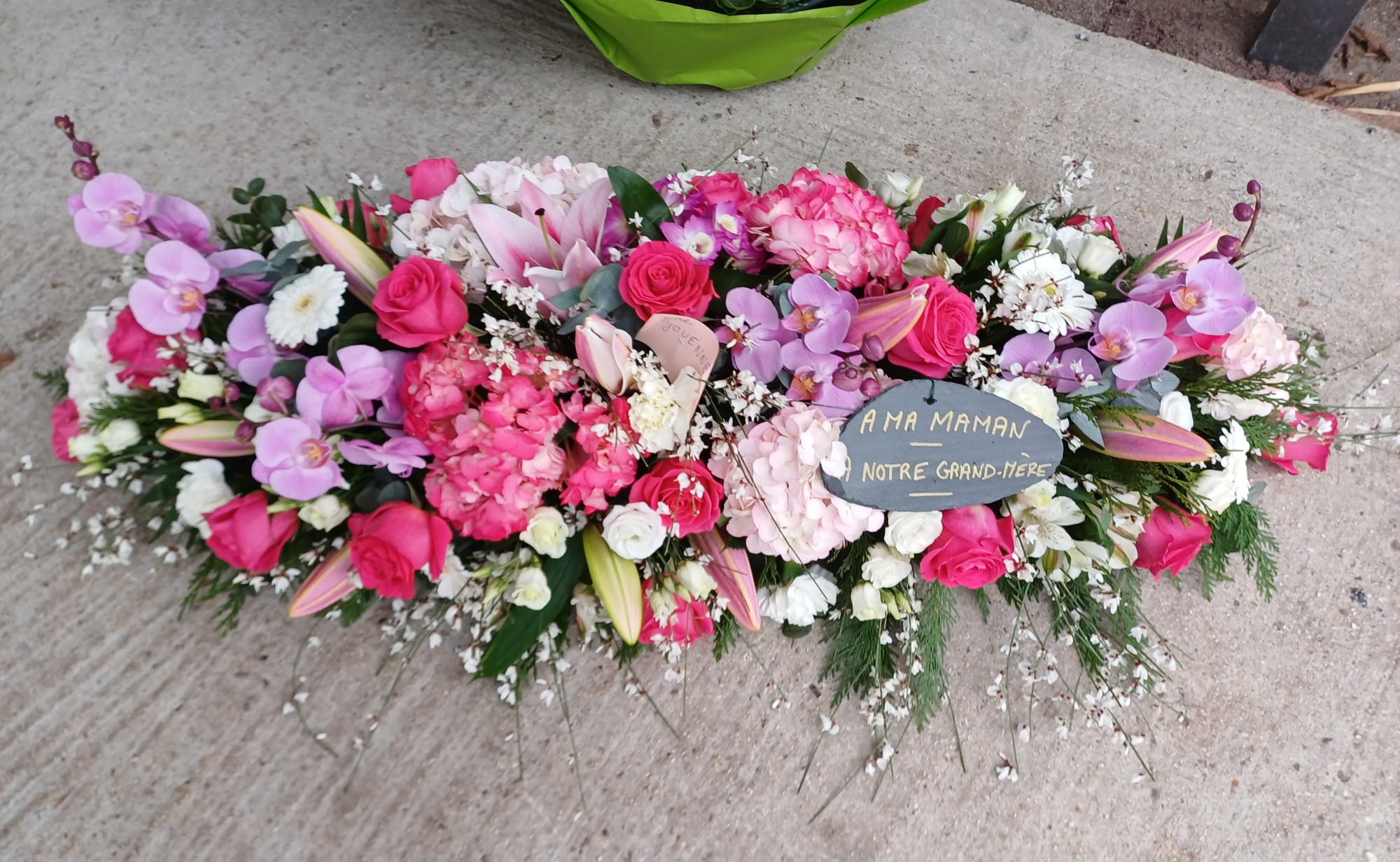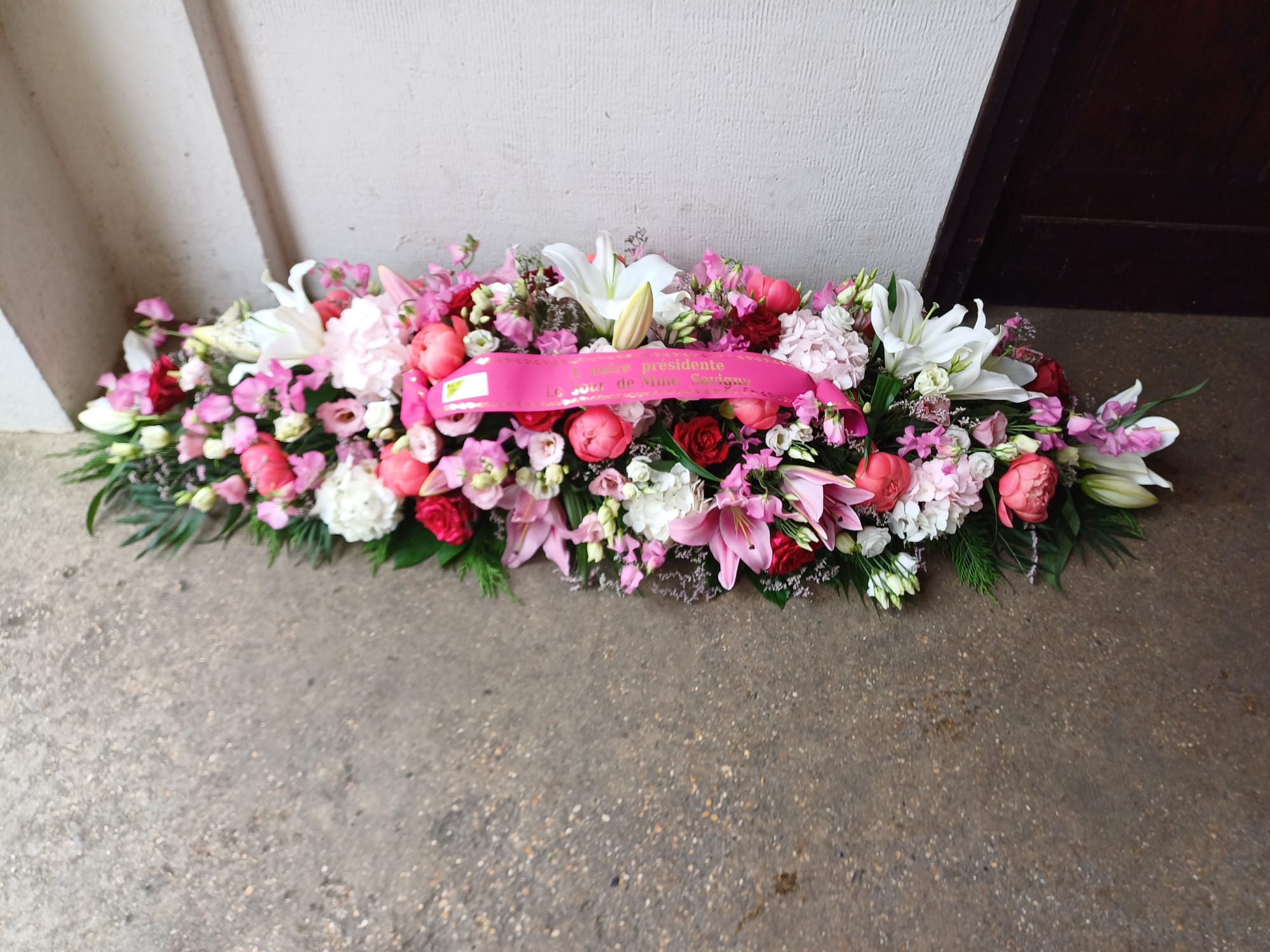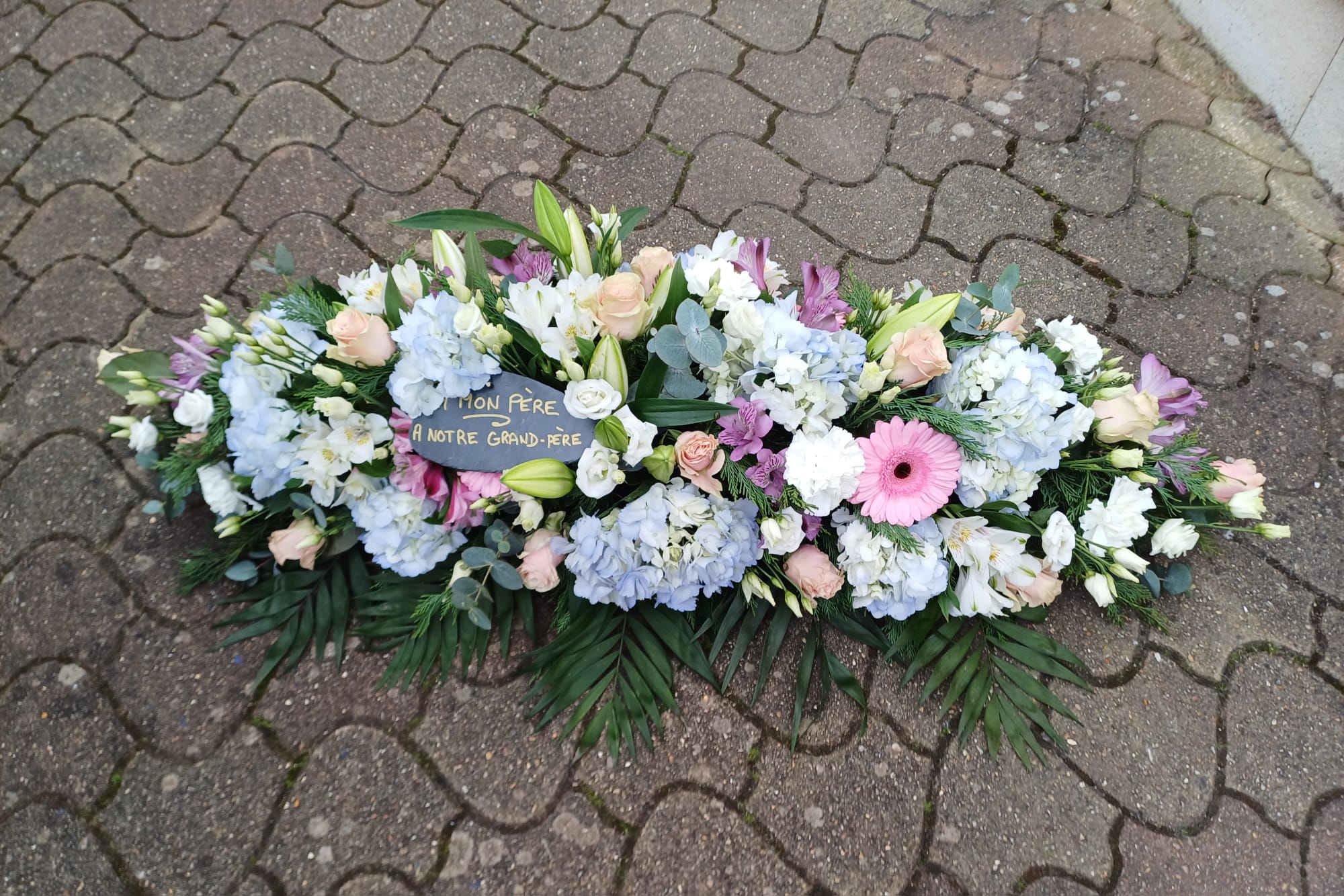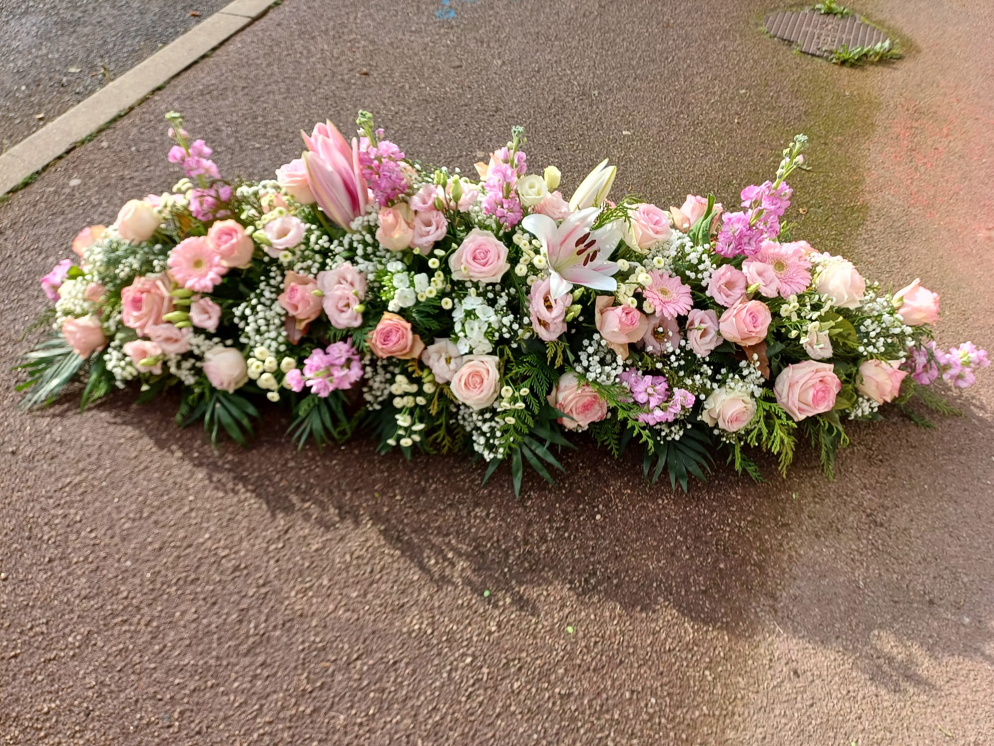Cette pièce est la principale . Elle sera sur le cercueil. Il pourra être faite avec toutes les fleurs de saison et dans les couleurs de votre choix.